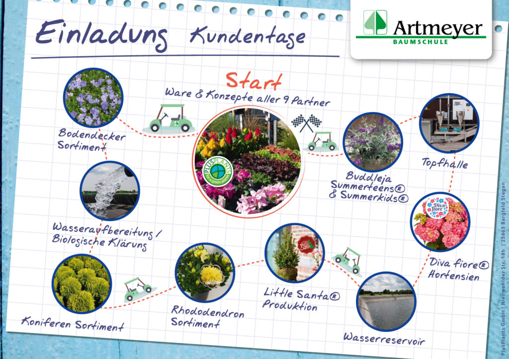 In unserem Partnerbetrieb Artmeyer finden in diesem Jahr am 04. und 05. Juli die Kundentage von PlusPlants statt. Wir stellen das gesamte Sortiment und die Konzepte aller neun Partner für geladene Gäste vor. Auch dies Jahr ist es eine wahre Freude die Vielfalt und die Ideen aller Betriebe auf einen Schlag zu sehen. Gemeinsam sind wir einfach mehr!