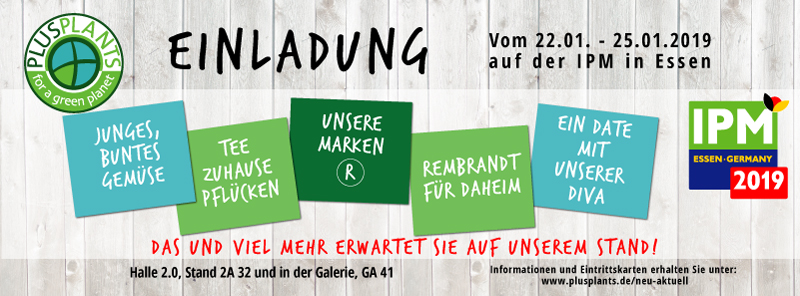 Wir freuen uns, gemeinsam mit den PlusPlants-Partnern, Sie auch in diesem Jahr auf der IPM in Essen begrüßen zu dürfen!